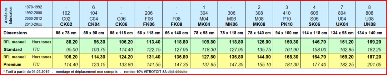 Prix 2019 des stores rideaux manuels VELUX RFL (pose non comprise)