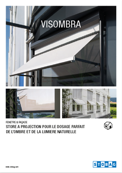 Grâce à la combinaison intelligente du store vertical et à projection, du réglage en continu de la position de l'angle de chute entre 0° et 180° et du libre choix du point de pivotement, le store en toile STOBAG VISOMBRA FS6000 garantit un rapport optimal entre la lumière du jour et l'ombre, même pour les grandes surfaces vitrées.