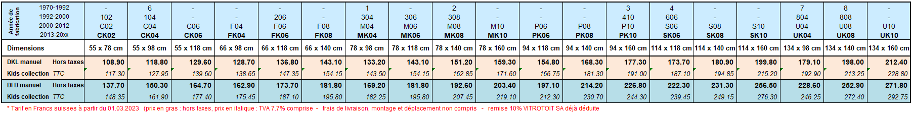 Tarif VITROTOIT SA - Stores VELUX DKL Kid collection - PRIX 2023
