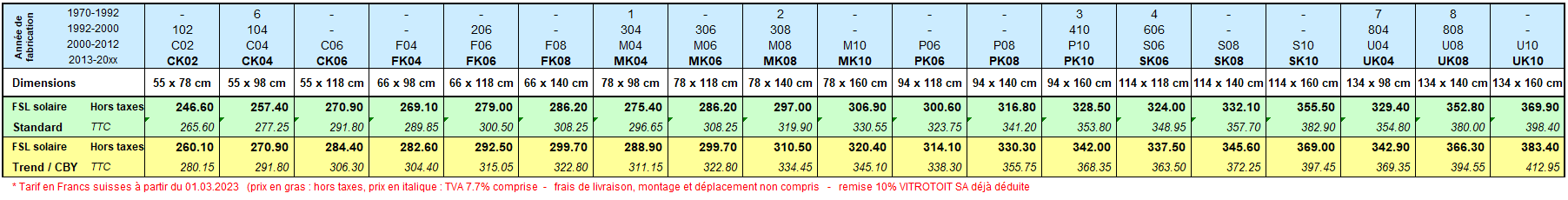 Prix 2023 des stores plissés solaires VELUX FSL (pose non comprise)